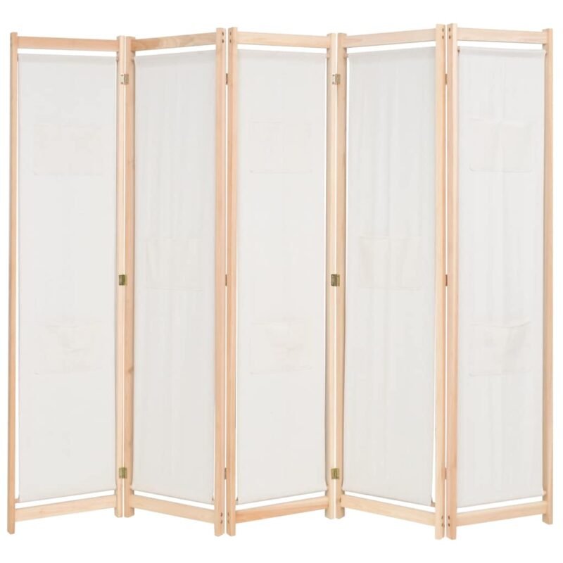 Paravent séparateur de pièce cloison de séparation décoration meuble 5 panneaux crème 200 x 170 x 4 cm tissu 0802071