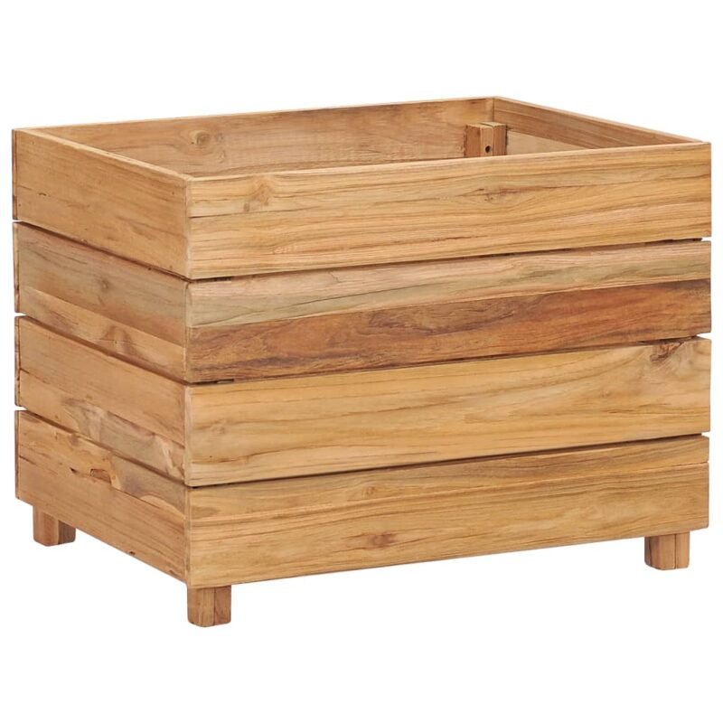 Jardinière lit surélevé plantes fleurs jardin 50 x 40 x 38 cm bois de teck recyclé et acier 02_0000937