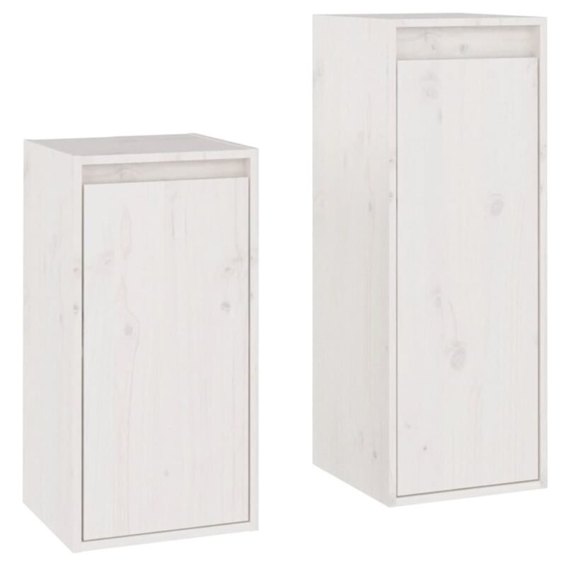 Meubles TV multimédia étagère télévision buffet téléviseur salle à manger salon chambre 2 pièces bois massif de pin blanc 02_0028582