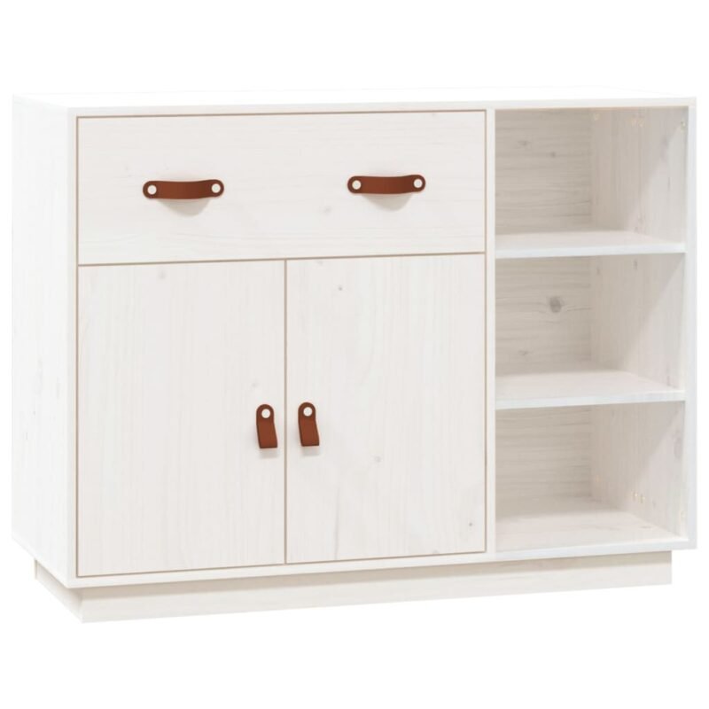 Buffet bahut commode armoire meuble de rangement organisateur cuisine salle de séjour salon 98,5 x 40 x 75 cm bois massif de pin blanc 02_0030542