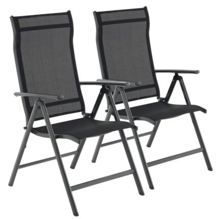 Lot de 2 chaises de jardin pliables sièges d’extérieur cadre en aluminium robuste dossier réglable sur 8 positions charge 150 kg noir 12_0001696