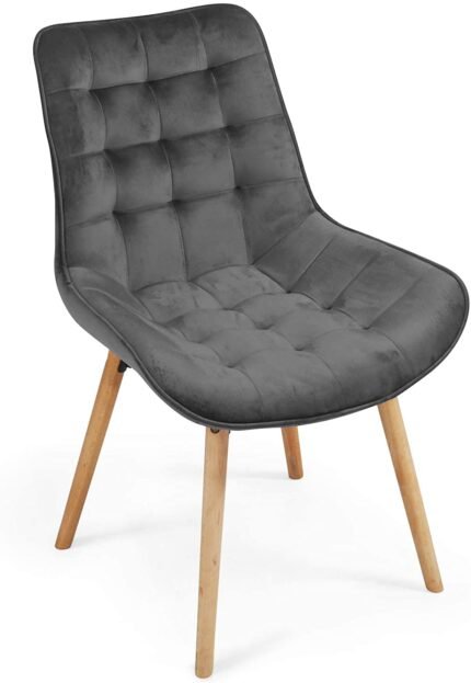 Lot de 6 chaises de salon salle à manger pied en bois et velours gris foncé 01_0000736