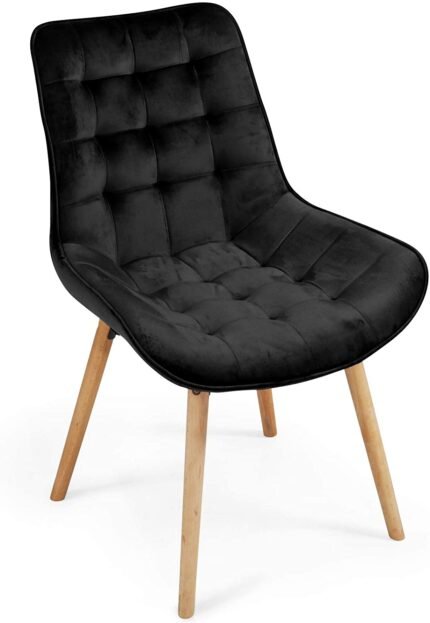 Lot de 6 chaises de salon salle à manger pied en bois et velours noir 01_0000731