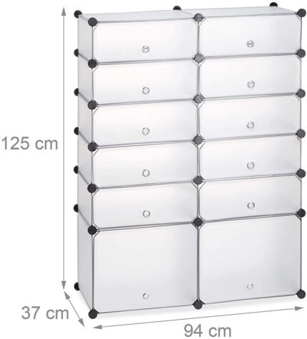 Étagère armoire meuble de rangement à chaussures en plastique 12 compartiments 125 cm transparent 13_0001638_2