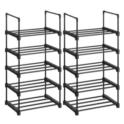 Étagères à chaussures à 5 niveaux lot de 2 porte-chaussures en métal empilable peu encombrant rangement de chaussures multifonctionnel pour entrée chambre salon noir 12_0002616