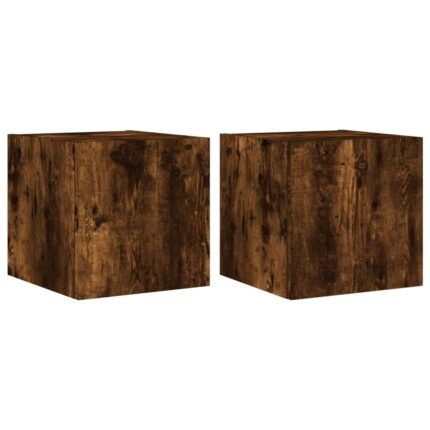 Meubles TV muraux multimédia étagère télévision buffet téléviseur salle à manger salon chambre et lumières LED 2 pièces chêne fumé 40,5 x 35 x 40 cm brun 02_0029141