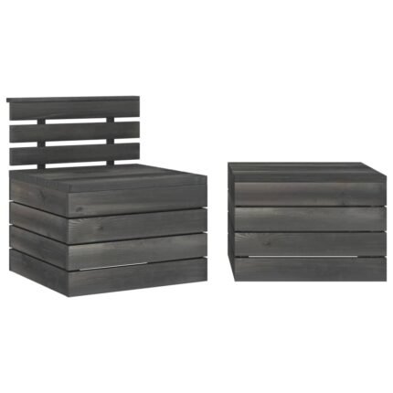 Salon de jardin meuble d’extérieur ensemble de mobilier palette 2 pièces bois de pin massif gris foncé 02_0018361