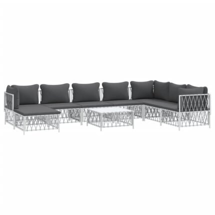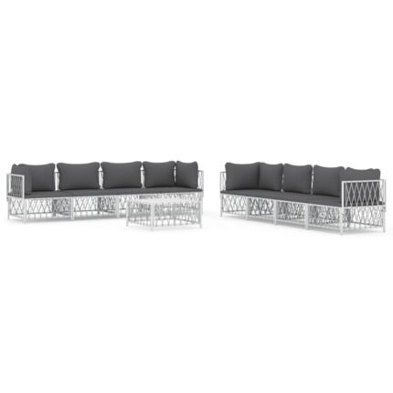Salon de jardin meuble d’extérieur ensemble de mobilier avec coussins 9 pièces blanc acier 02_0018324