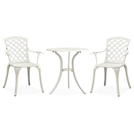 Ensemble de bistro jardin meuble extérieur terrasse 3 pièces aluminium coulé blanc 02_0013502