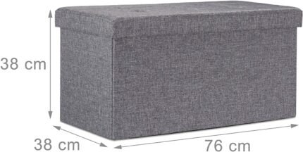 Banc de rangement en linPouf de rangement stable, rempli ou nonDe la place pour vos journaux, livres, DVD etcSe plie
