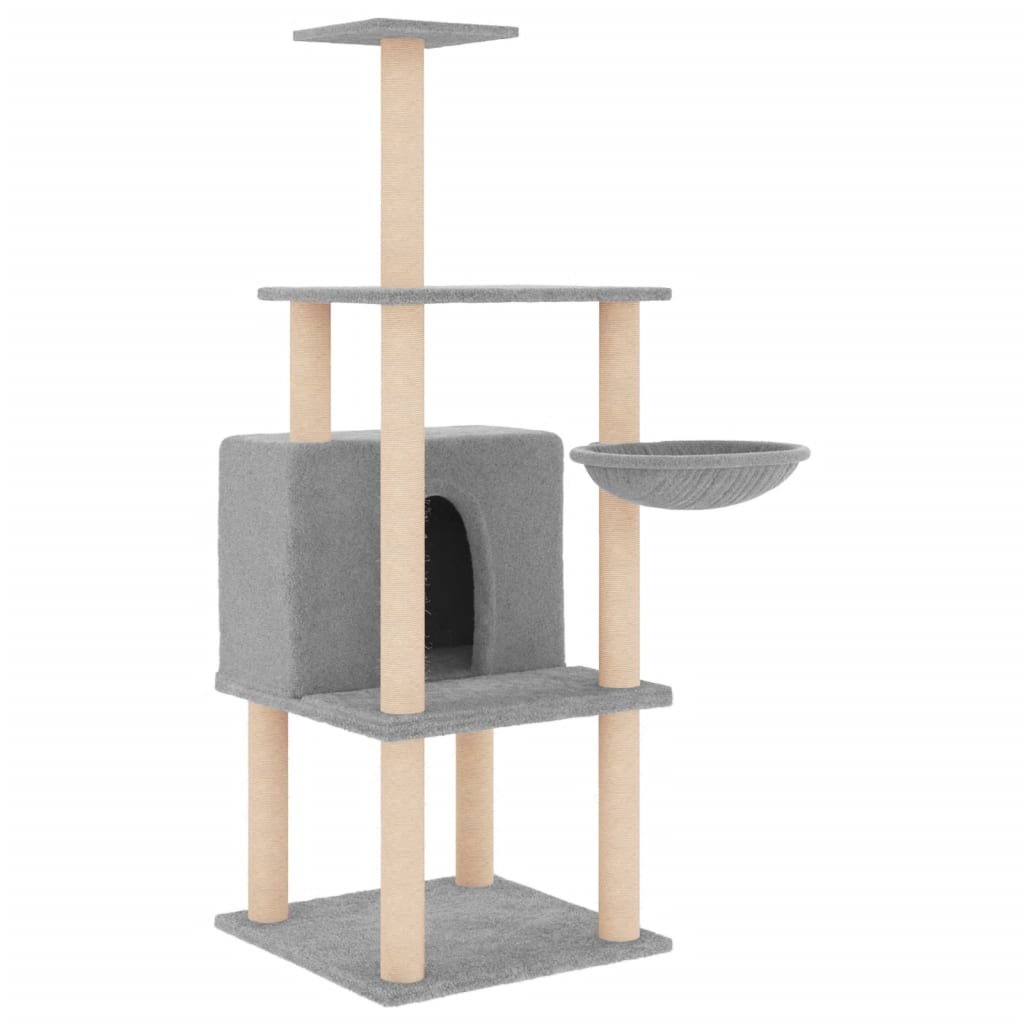 Arbre à chat meuble tour grimper jouet grattage grattoir escalade plateforme avec griffoirs en sisal clair 132 cm gris 02_0022561
