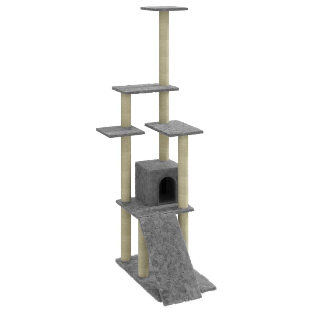 Arbre à chat meuble tour grimper jouet grattage grattoir escalade plateforme avec griffoirs en sisal clair 155 cm gris 02_0022581