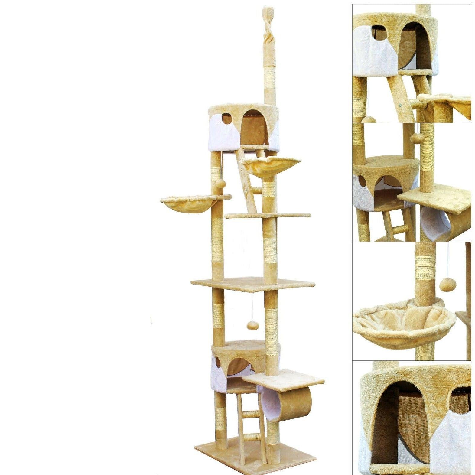 Arbre à chat plafond corde en sisal griffoir grattoir XXL escalade beige et blanc 16_0000015