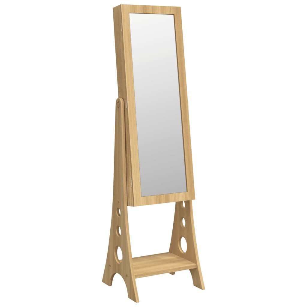 Armoire à bijoux meuble rangement organisateur chambre vestiaire salle de bain miroir avec lumières LED sur pied marron 02_0022849
