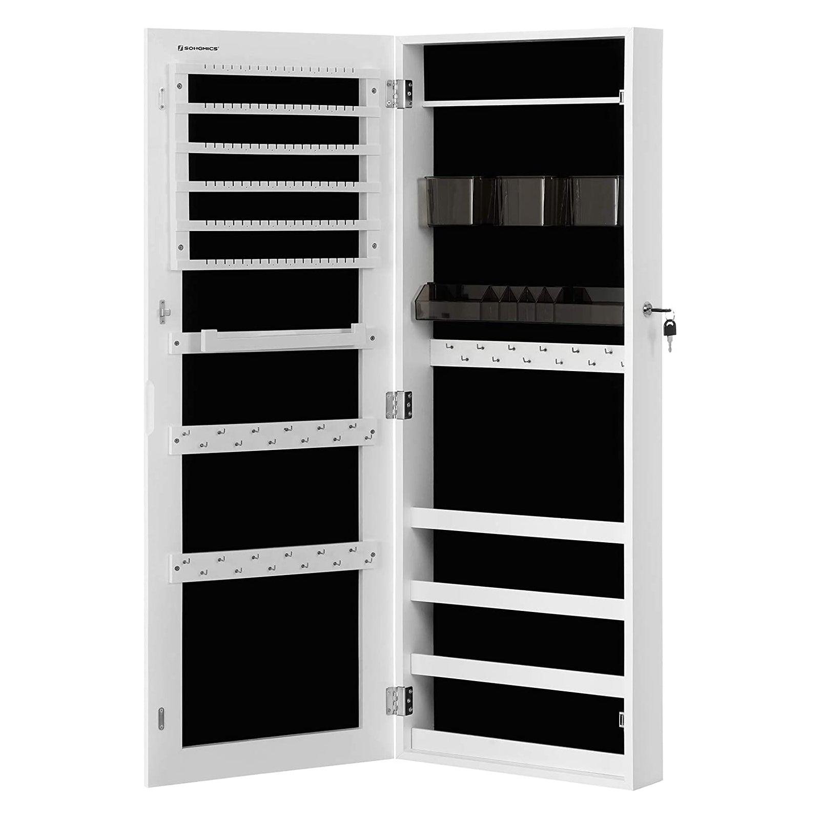 Armoire à bijoux murale range-bijoux avec 2 organisateurs cosmétiques à suspendre miroir psyché sans cadre avec serrure et clés 108 cm blanc 12_0002310