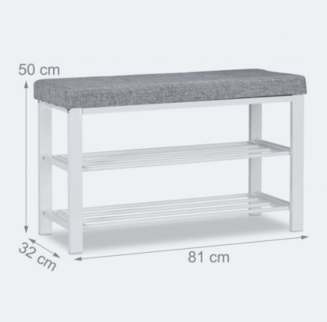 Banc banquette range chaussures coussin rembourré tissu étagère à chaussures 2 niveaux métal gris 13_0000366_2