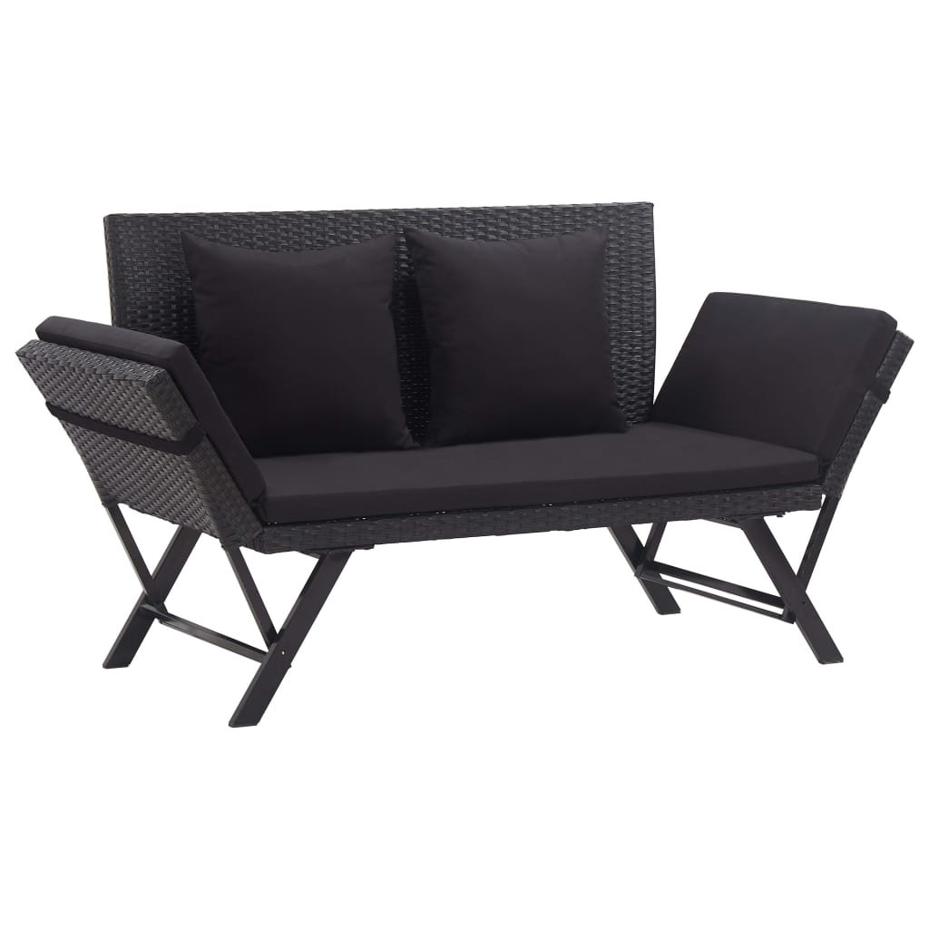 Banc de jardin meuble de patio d’extérieur terrasse avec coussins 110 x 60 x 32 cm résine tressée noir 02_0011595