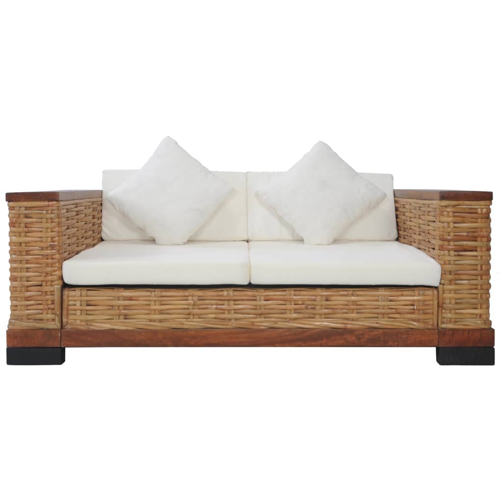 Canapé 2 places de salon salle de séjour maison intérieur avec coussins marron rotin naturel 02_0019492