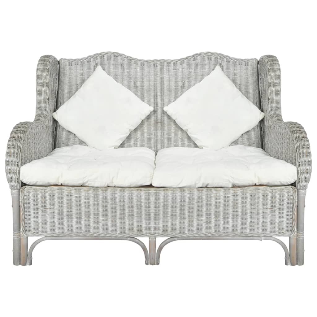 Canapé 2 places de salon salle de séjour maison intérieur places gris rotin naturel et lin 02_0020778
