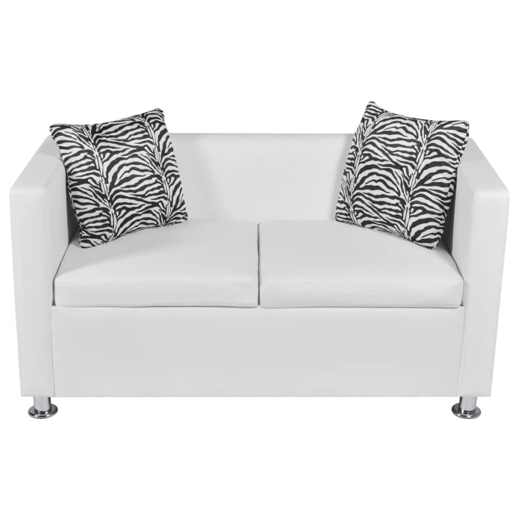 Canapé 2 places de salon salle de séjour maison intérieur similicuir blanc 02_0019605