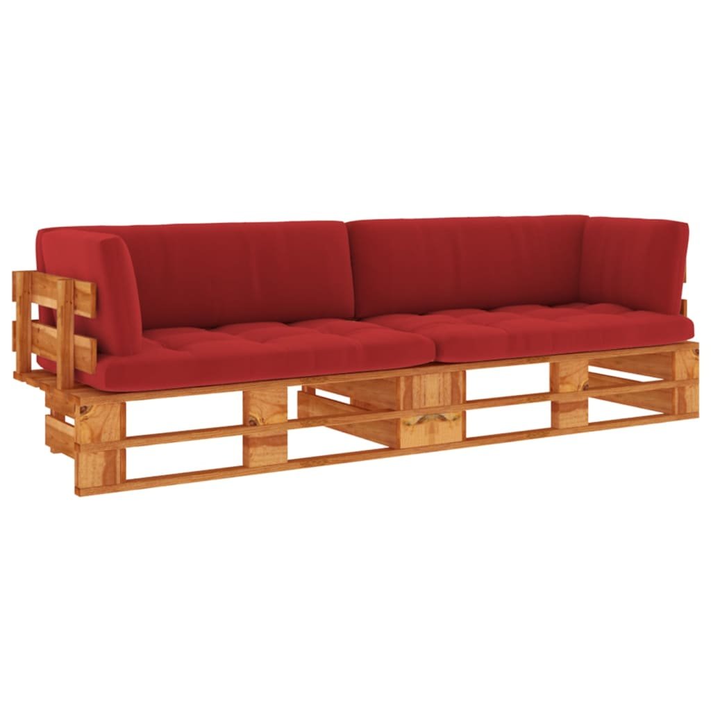 Canapé palette 2 places et coussins pin imprégné de marron miel 02_0013262
