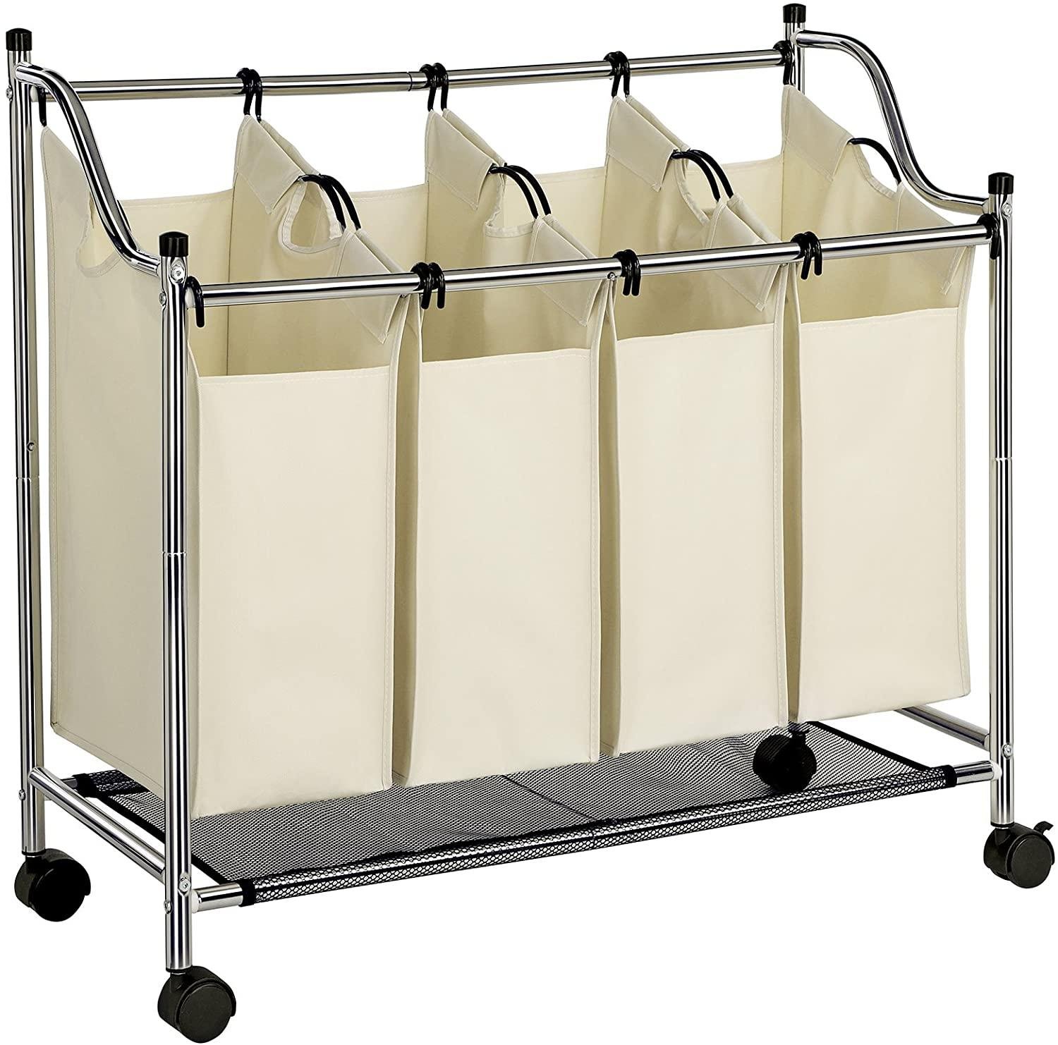 Chariot à linge panier à linge chariot à linge avec 4 sacs amovibles corbeille à linge avec roulettes à la lessive robuste 4 x 35 litres beige 12_0000417