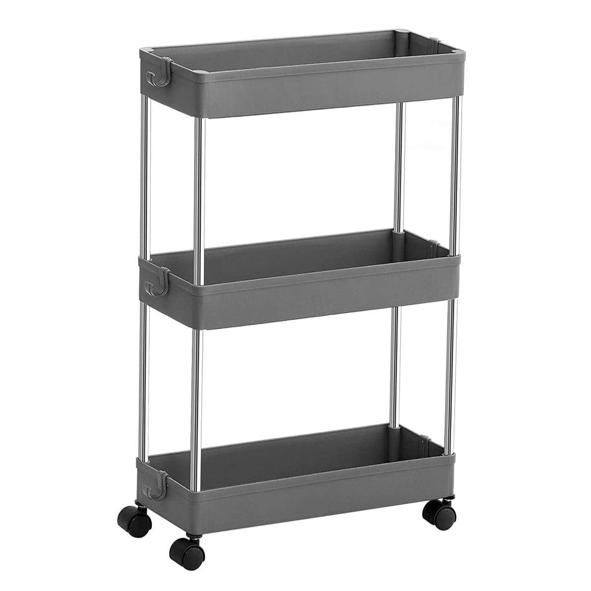 Chariot de rangement mobile sur 3 niveaux étagère sur roulettes gain de place étagère fine pour salle de bain cuisine design ajouré 40 x 12,5 x 60 cm gris 12_0003492