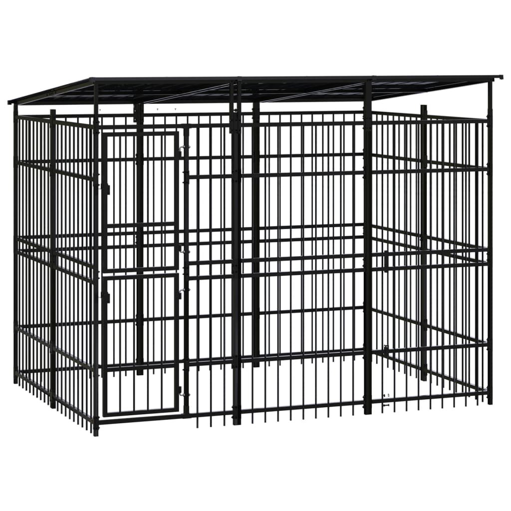 Chenil cage enclos pac animaux d’extérieur avec toit pour chiens acier 5,53 m² noir 02_0041762
