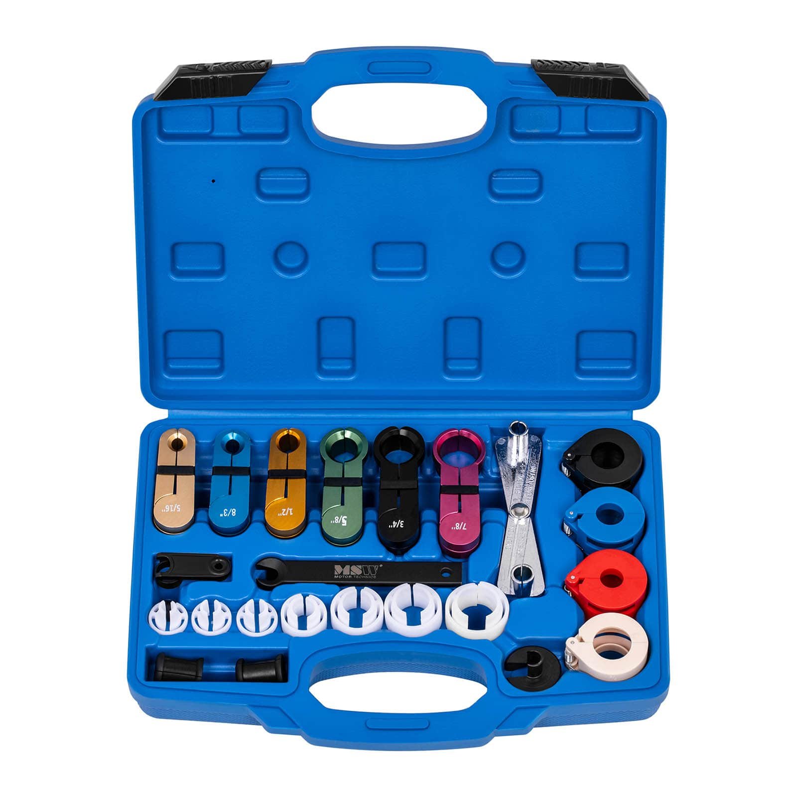 Il contient : quatre outils de déblocage pour Spring Lock de différents diamètres (3/8, 1/2, 3/4, 5/8 pouce), six outils de déverrouillage (5/16, 3/8, 1/2, 5/8, 3/4, 7/8 pouce), deux leviers, six clips de desserrage pour raccords rapides et quatre outils de démontage supplémentaires.