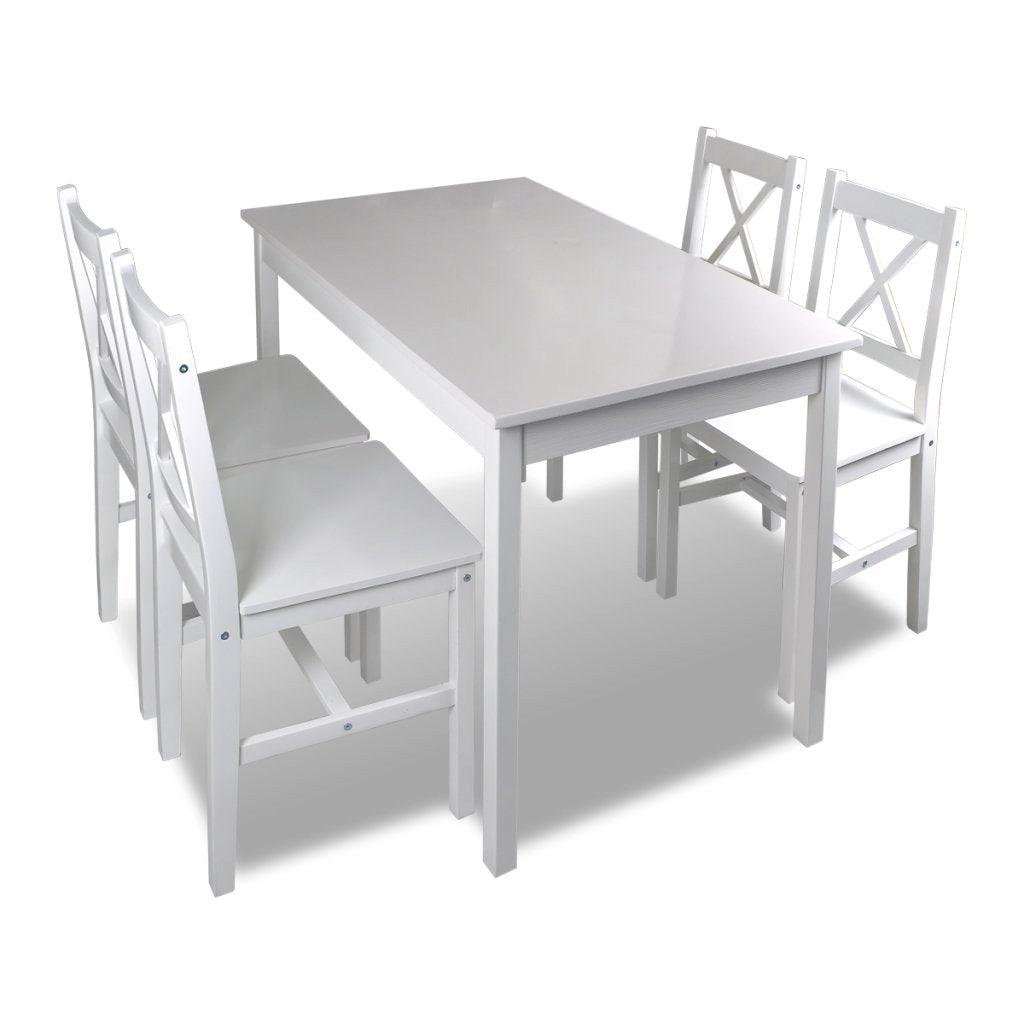 Ensemble table salle à manger 108 cm salon en bois de pin avec 4 chaises blanc 0902031