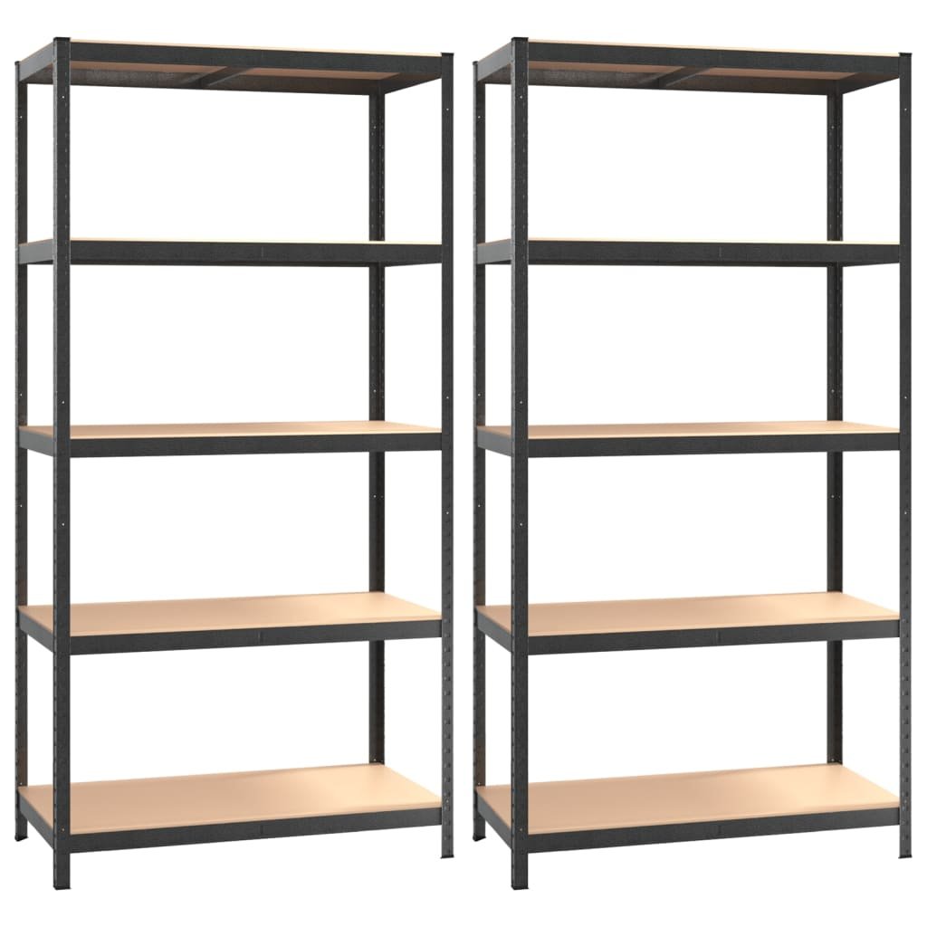 Étagère à 5 niveaux lot de 2 acier et bois ingénierie gris 02_0045718