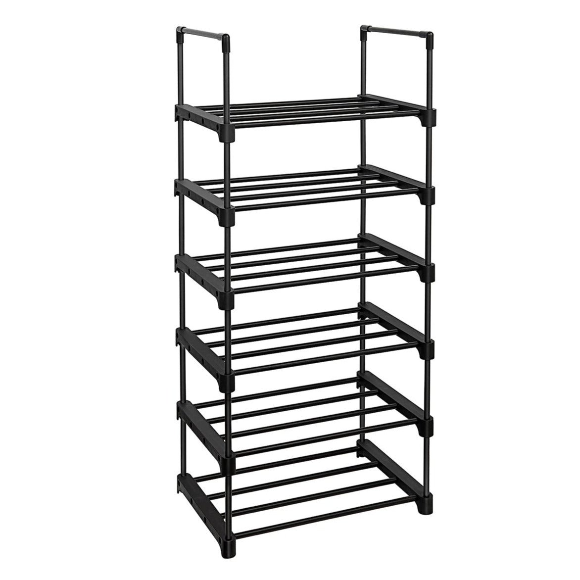 Étagère à chaussures à 6 niveaux meuble de rangement polyvalent cadre en fer personnalisable peu encombrant pour entrée salon chambre 45 x 30 x 106 cm noir 12_0003578