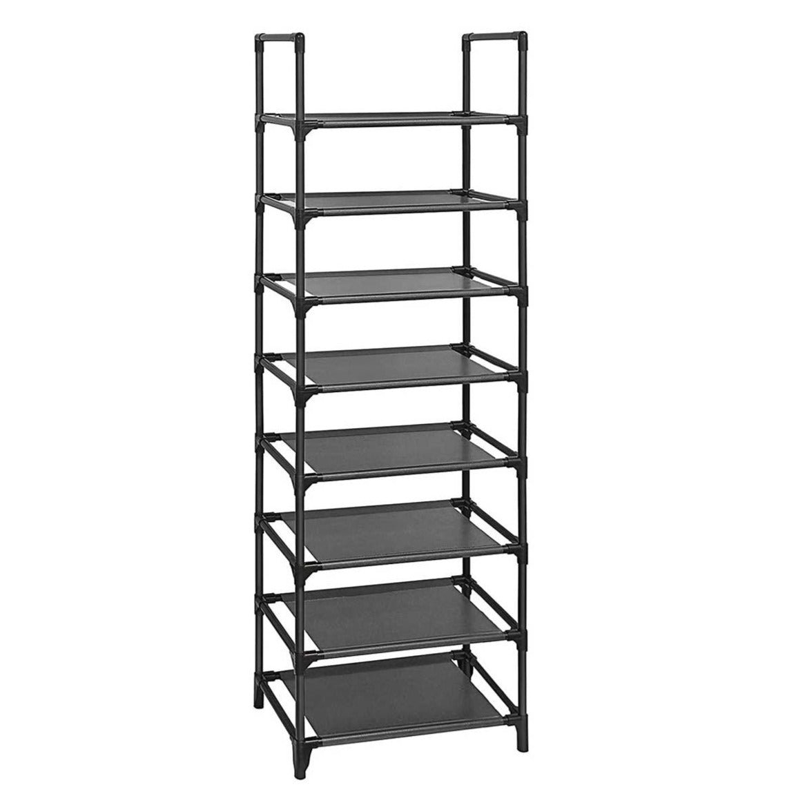 Étagère à chaussures à 8 niveaux meuble de rangement cadre en métal étagère en tissu non-tissé 16-20 paires pour entrée salon chambre 46 x 28 x 145 cm noir 12_0003567