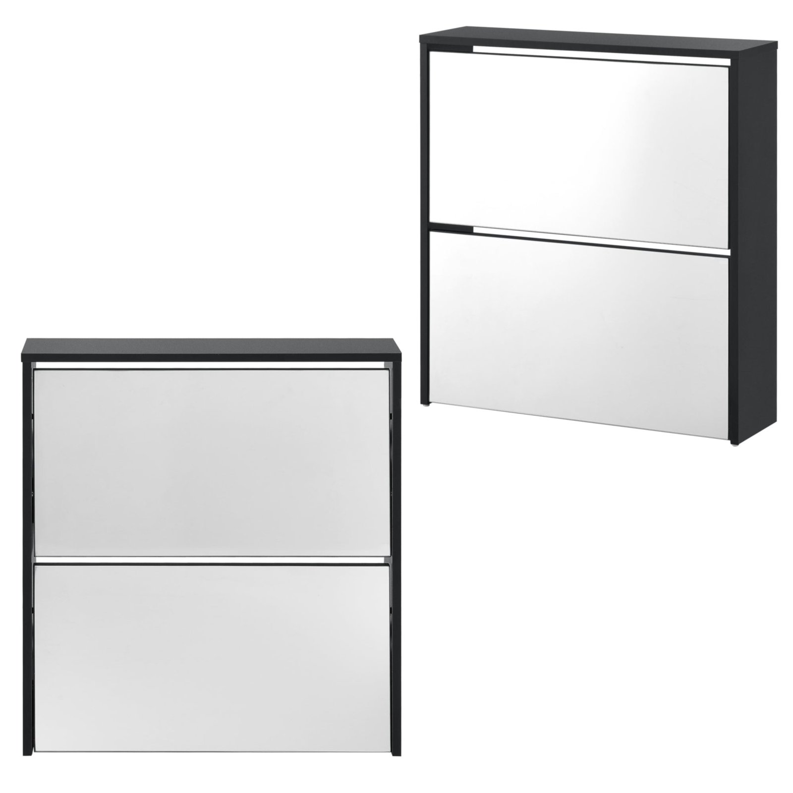 Étagère à chaussures design meuble de rangement 2 compartiments stockage pour 6 paires façade miroir panneaux de particules mélaminés 67 x 63 x 17 cm noir 03_0005164