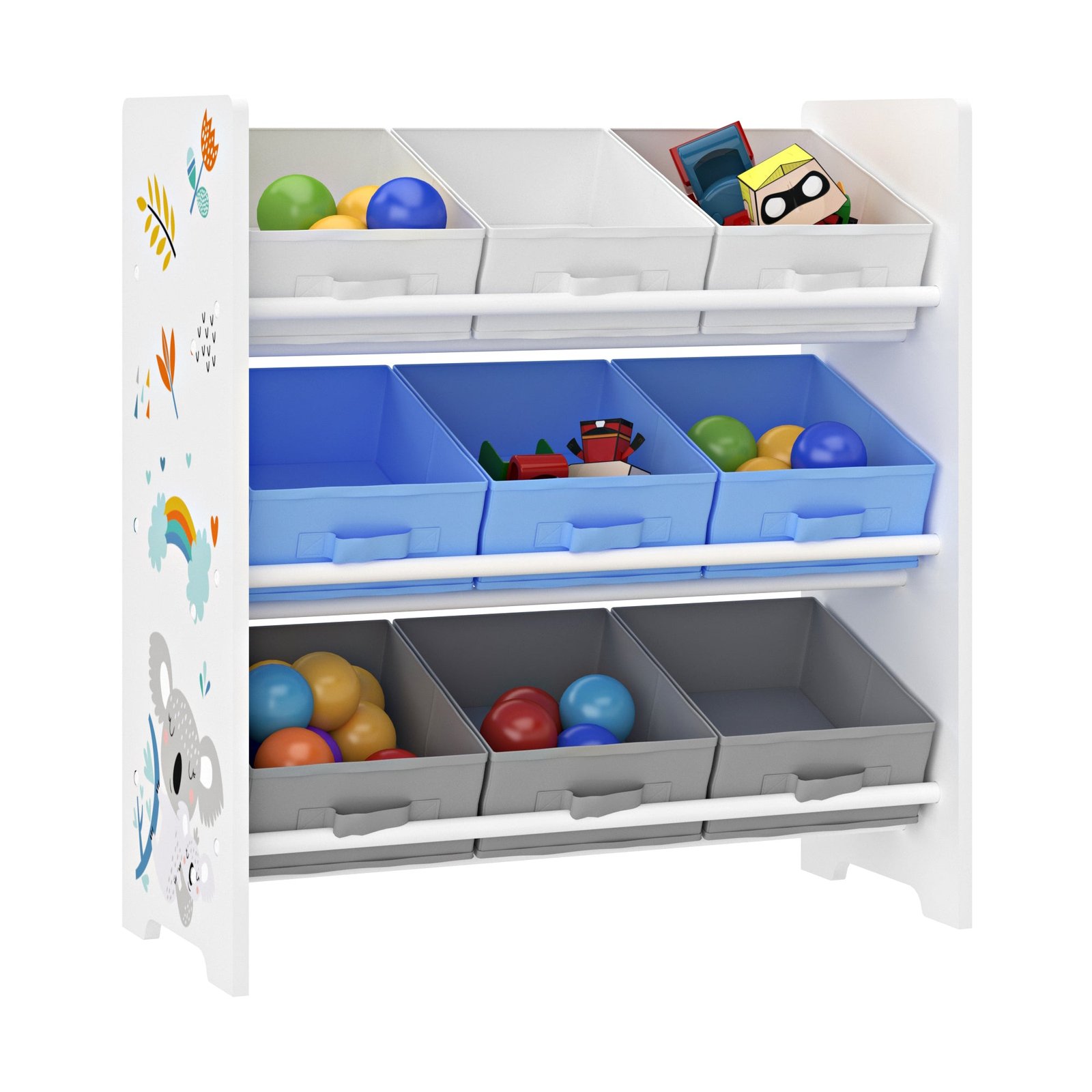 Étagère de rangement pour enfant avec 9 bacs pliables blanc / gris / bleu 03_0006979