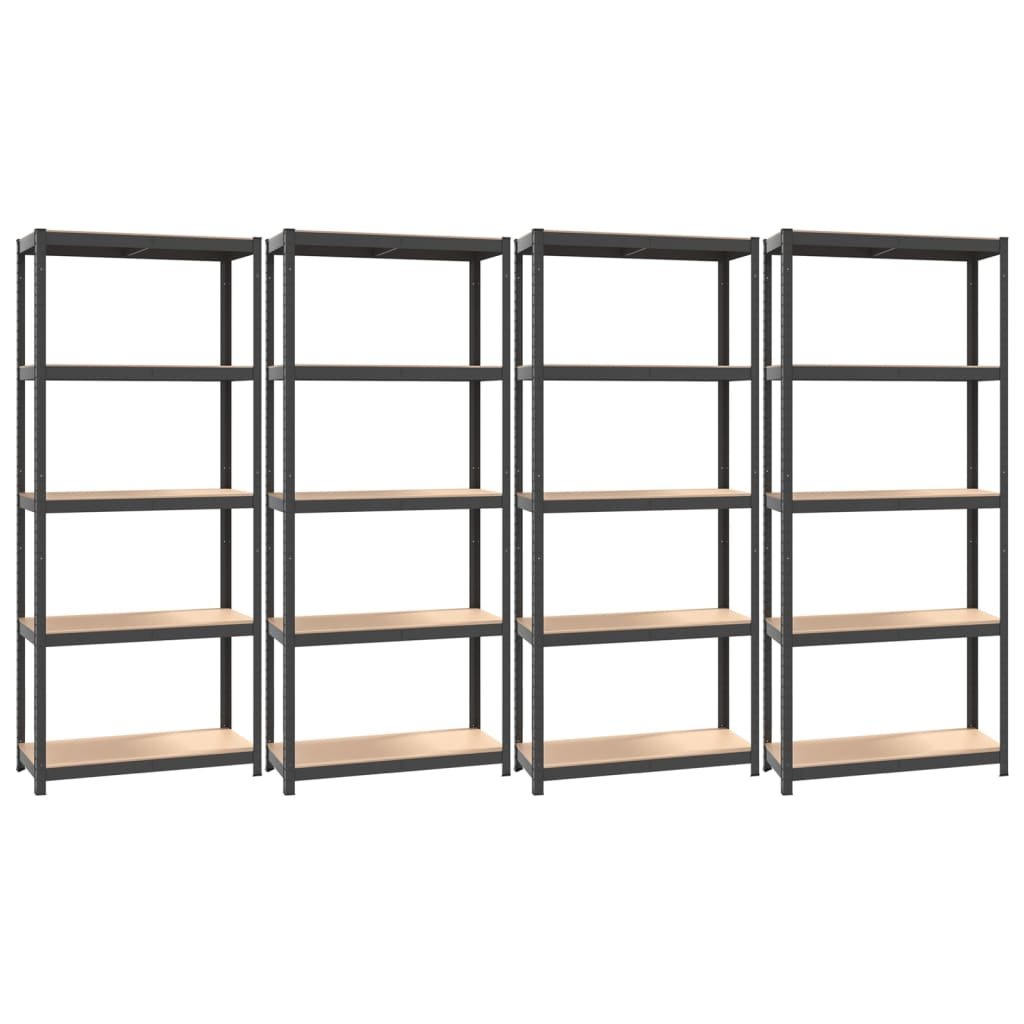 Étagères meubles rangement à 5 niveaux lot de 4 acier et bois d’ingénierie anthracite 02_0045805