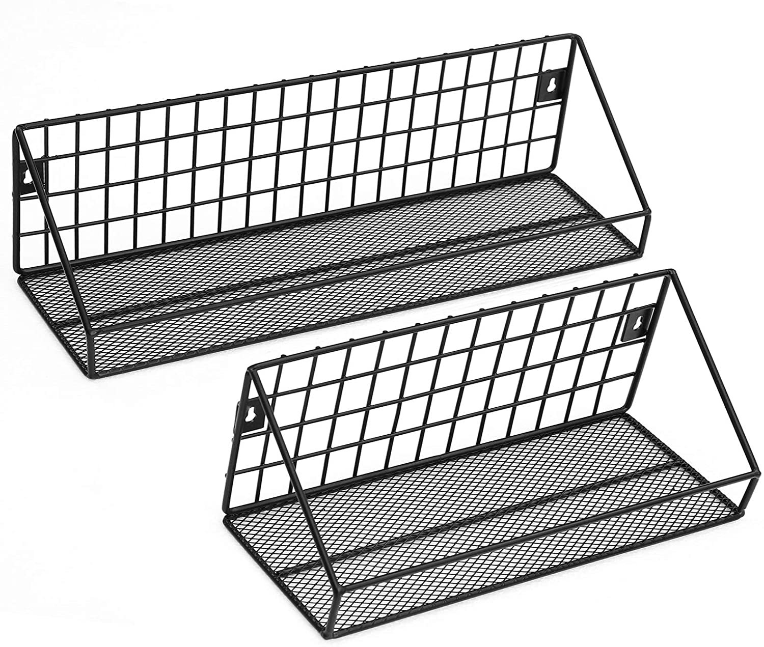 Étagères murales style industriel en métal charge 15 kg/étagère lot de 2 avec 10 crochets pour chambre salon cuisine 30 x 12 x 13 cm et 40 x 12 x 13 cm noir 12_0000033