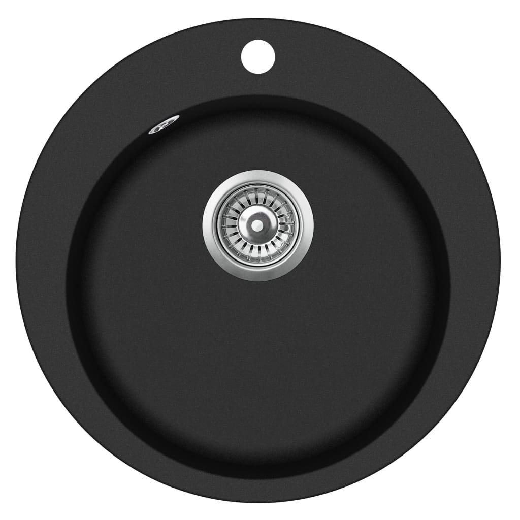 Évier de cuisine en granit bac unique rond noir 02_0002325