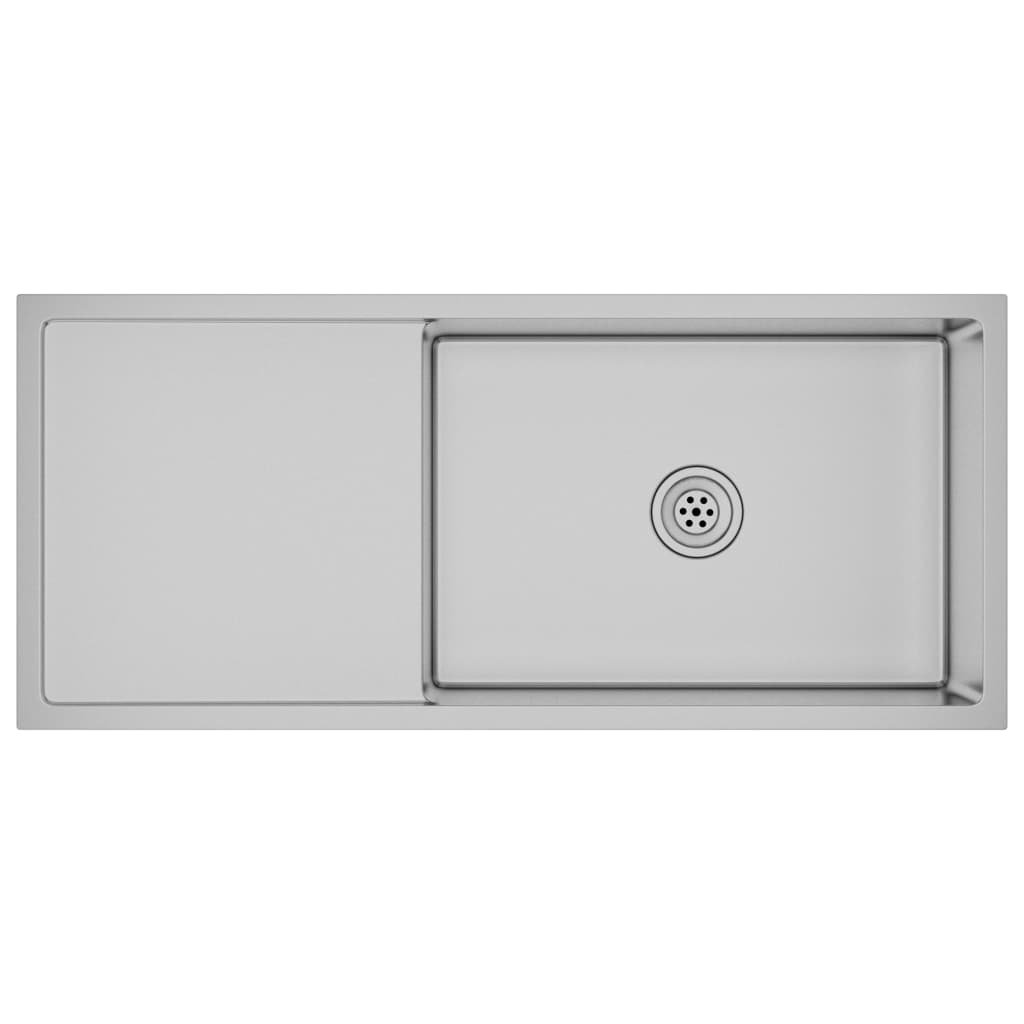 Évier de cuisine fait main 100 x 44 cm acier inoxydable argenté 02_0002475