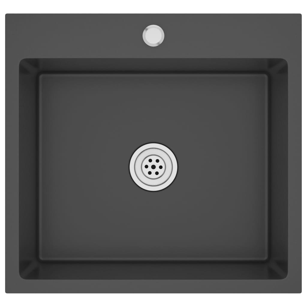 Évier de cuisine fait main 53 x 50 cm acier inoxydable noir 02_0002460