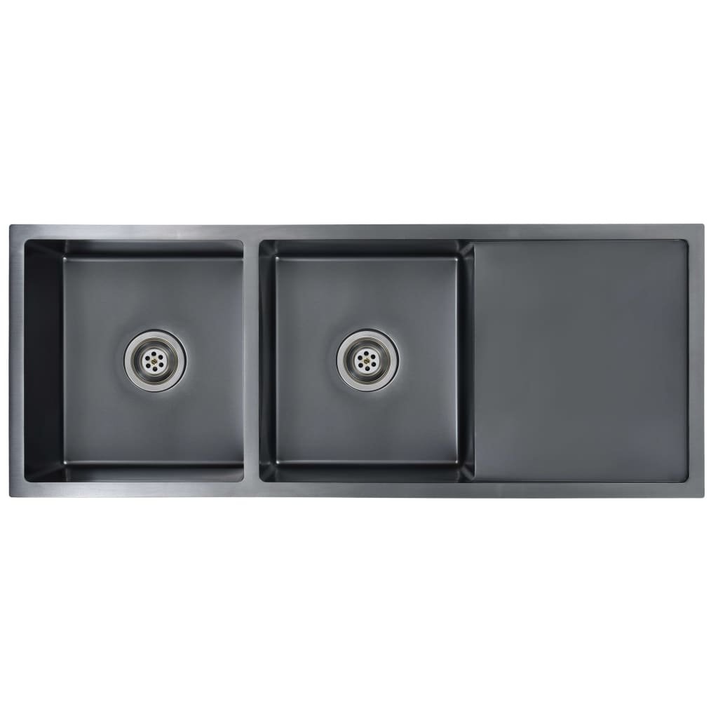 Évier de cuisine fait main avec crépine 111,5 x 44 cm acier inoxydable avec finition brossée noir 02_0002372