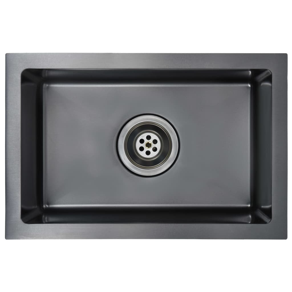 Évier de cuisine fait main avec crépine acier inoxydable noir 02_0002367