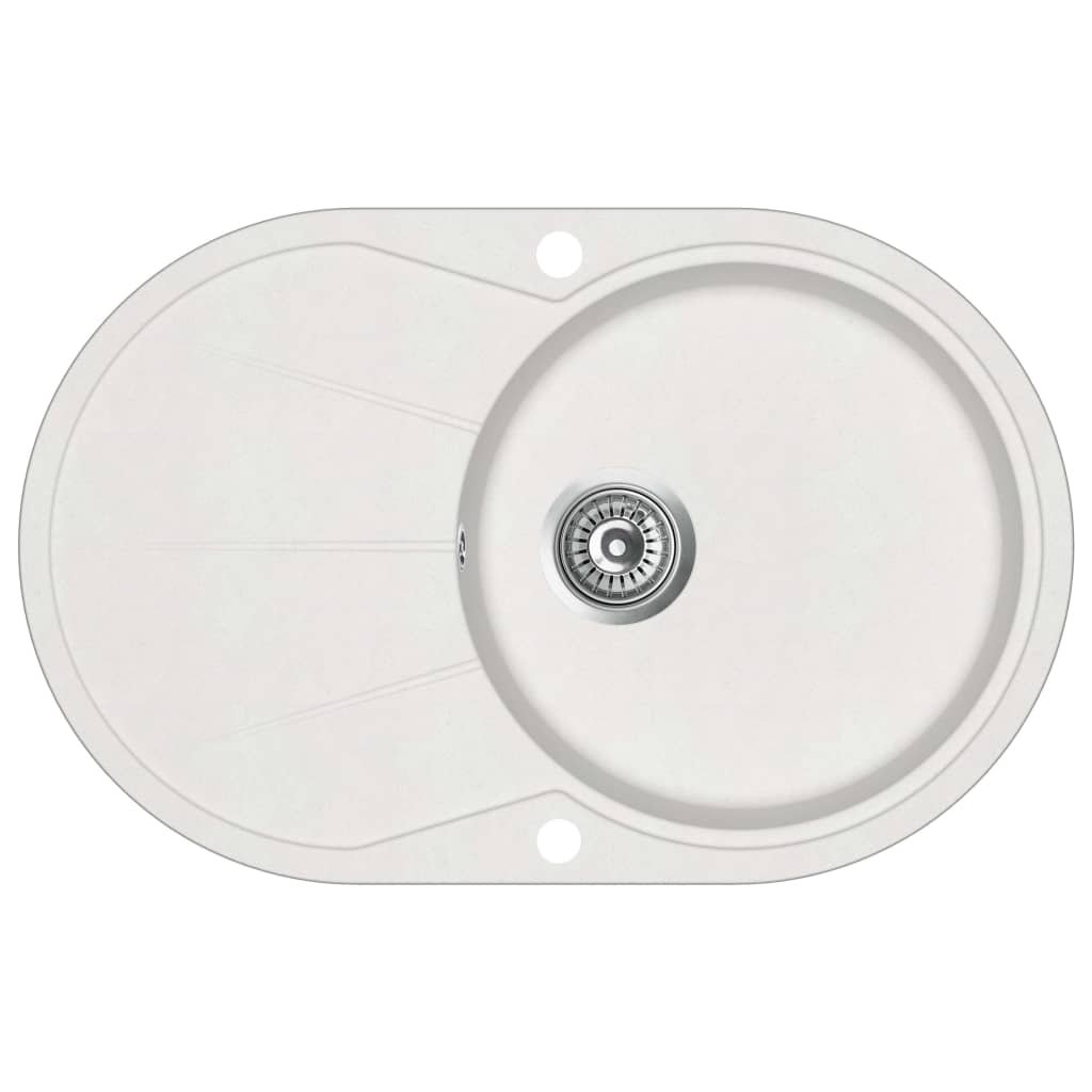 Évier de cuisine seul lavabo 78 x 50 cm ovale granit blanc 02_0002352