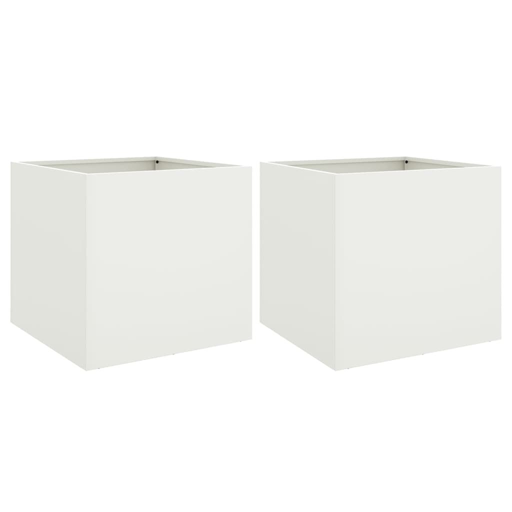 Jardinière bac lit surélevé plantes fleurs jardin terrasses lot de 2 42 x 40 x 39 cm acier blanc 02_0038975