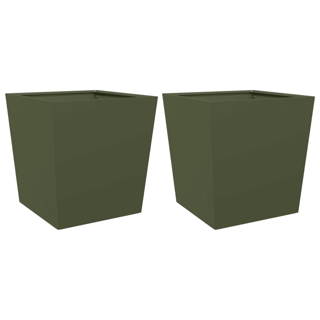 Jardinière bac lit surélevé plantes fleurs jardin terrasses lot de 2 olive 50 x 50 x 50 cm acier vert 02_0039087