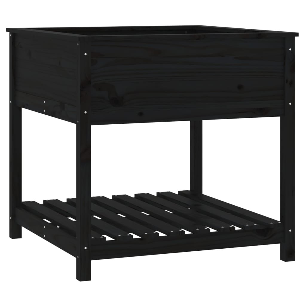 Jardinière bac lit surélevé plantes fleurs terrasse jardin avec étagère 82,5 x 82,5 x 81 cm bois massif de pin noir 02_0038411