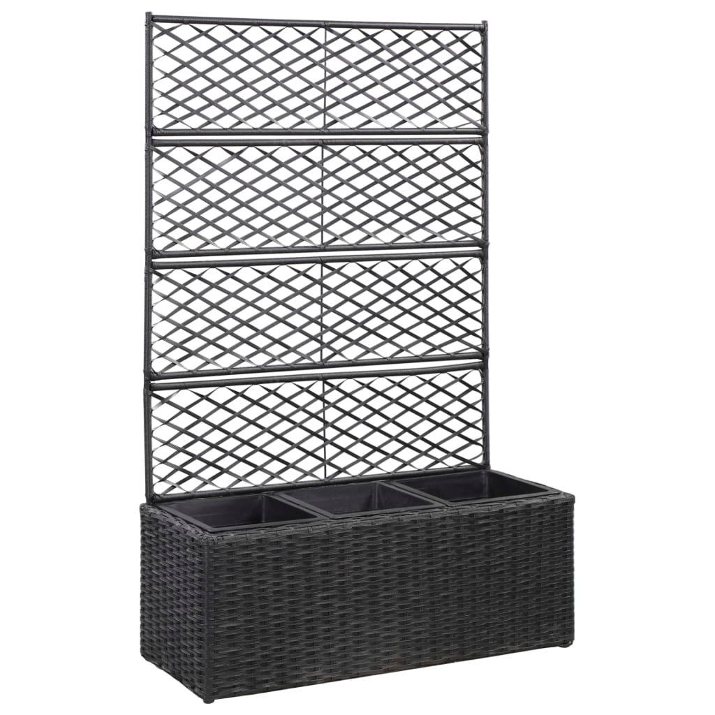 Ce lit surélevé en treillis avec 3 pots en résine tressée, dotée d’un treillis intégré, ajoutera une touche de charme à tout espace extérieur.