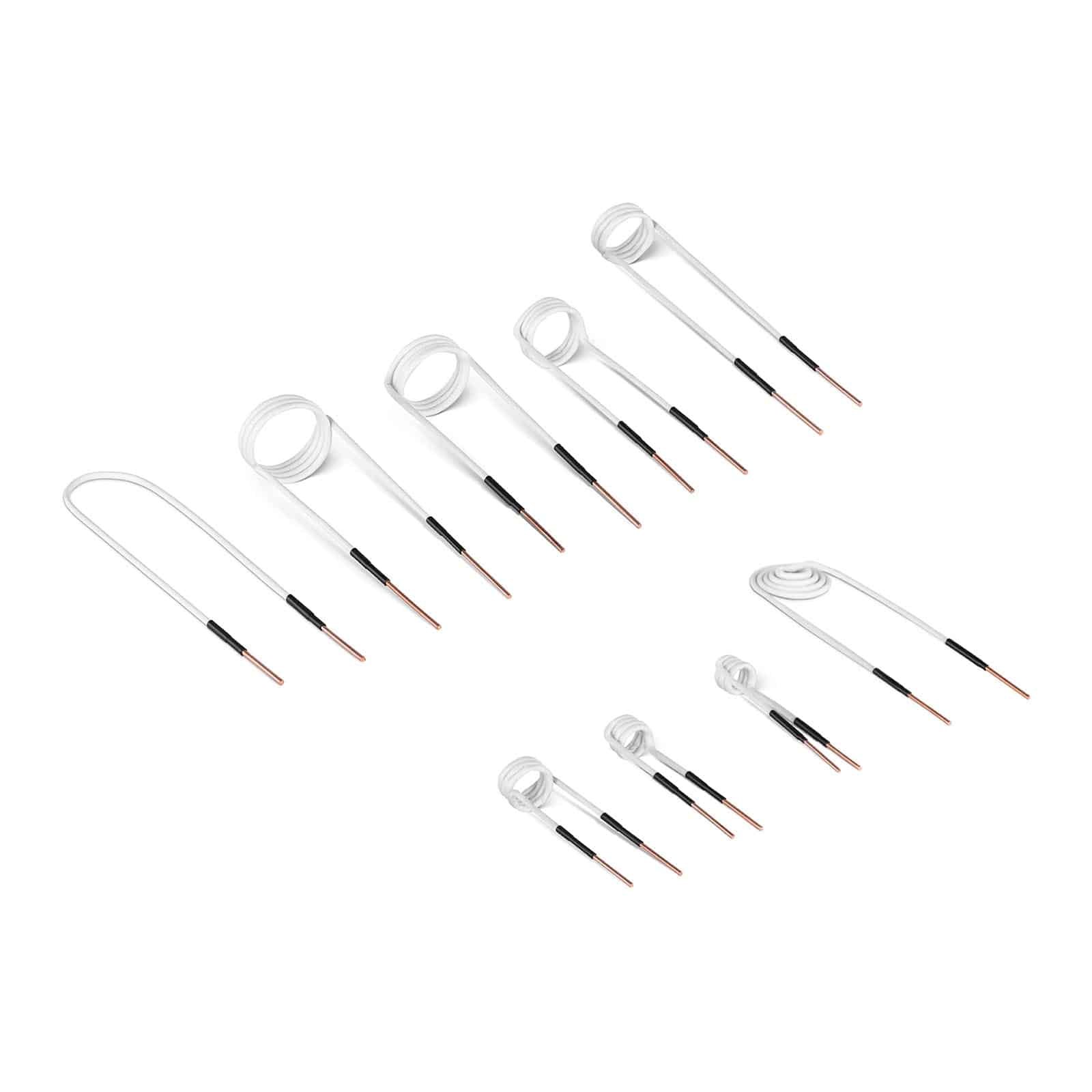Les bobines comprises dans ce jeu ont différentes longueurs et un diamètre de 3 – 50 mm, si bien qu’on peut les utiliser pour faire chauffer n’importe quelle pièce.