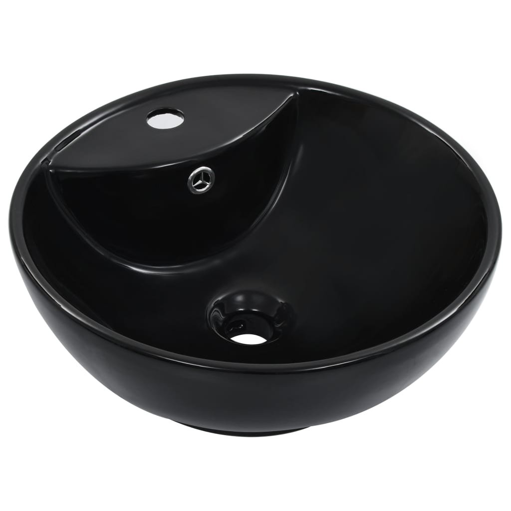 Lavabo avec trop-plein lave-mains vasque à poser monter salle de bain intérieur salle d’eau cabine de toilette maison 46,5 x 18 cm céramique noir 02_0002613