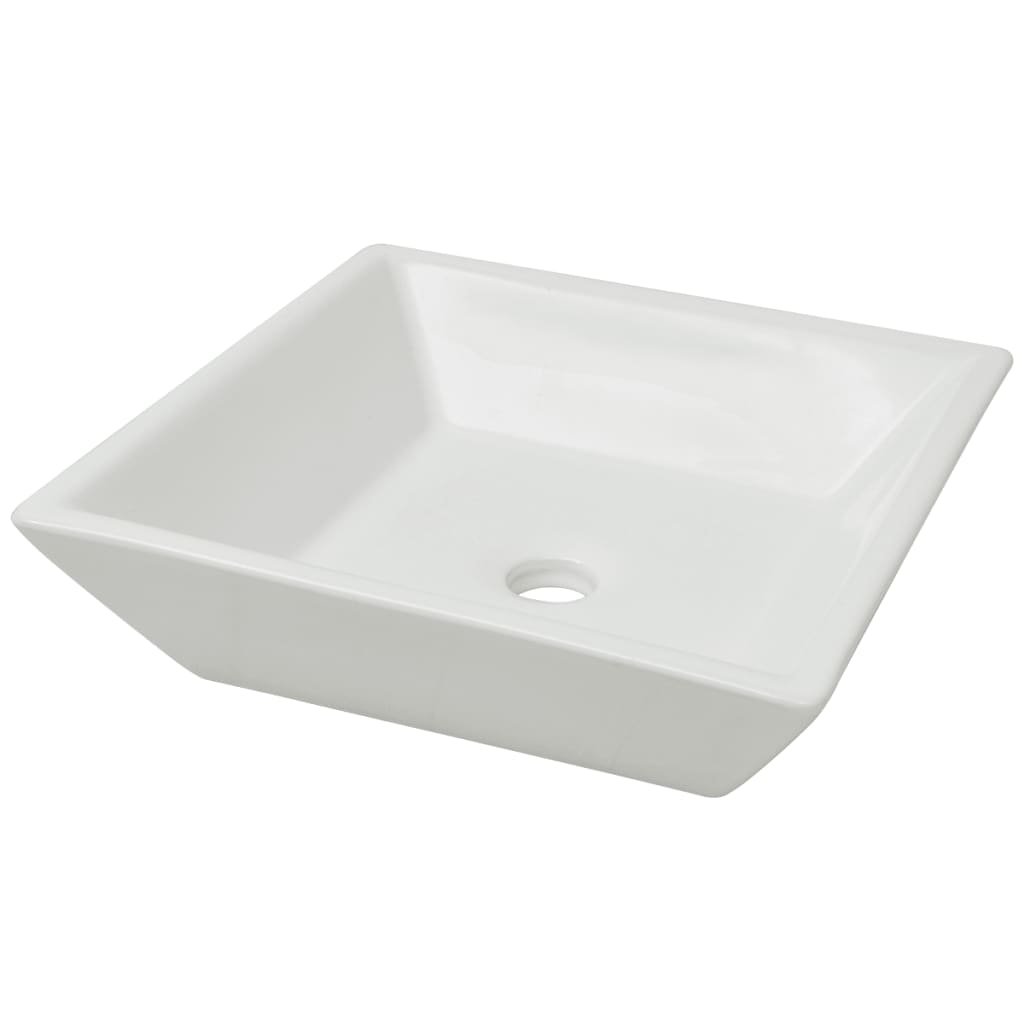 Ce lavabo carré en céramique de haute qualité est un accessoire élégant pour toute salle de bain.
